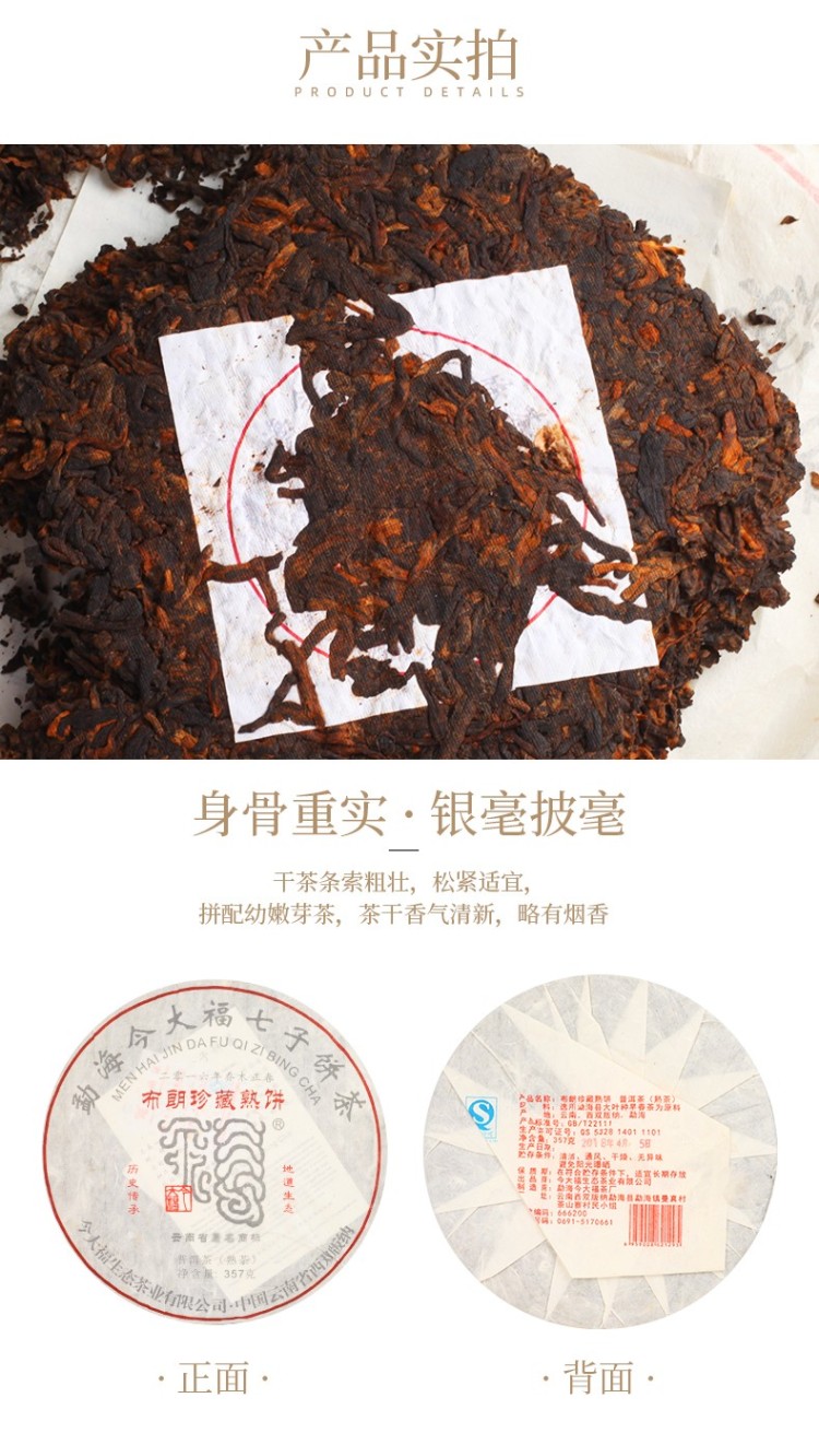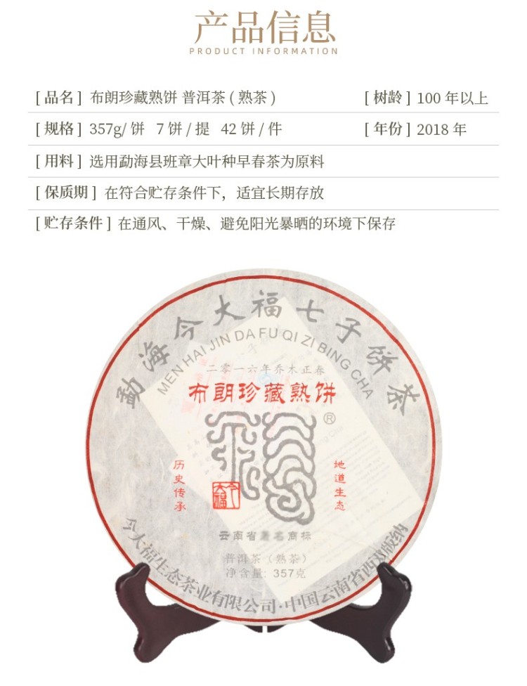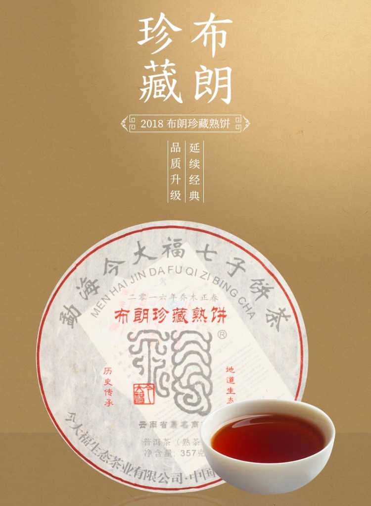 2018年今大福 布朗珍藏熟饼 357克七子饼 熟茶