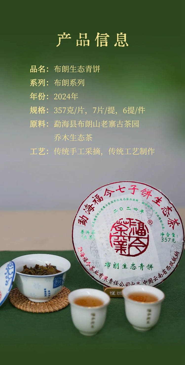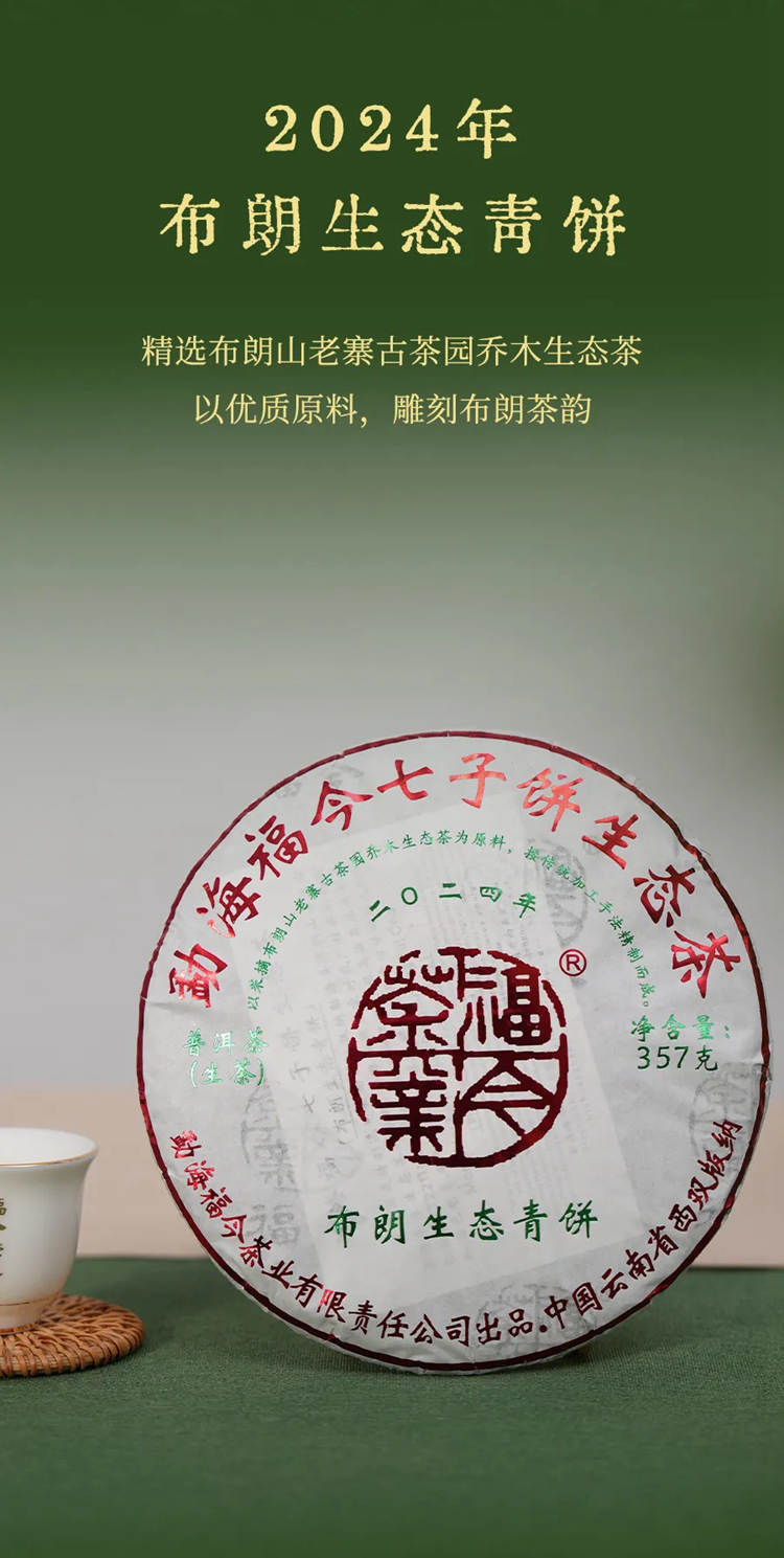 2024年福今 布朗生态青饼 357克生茶七子饼