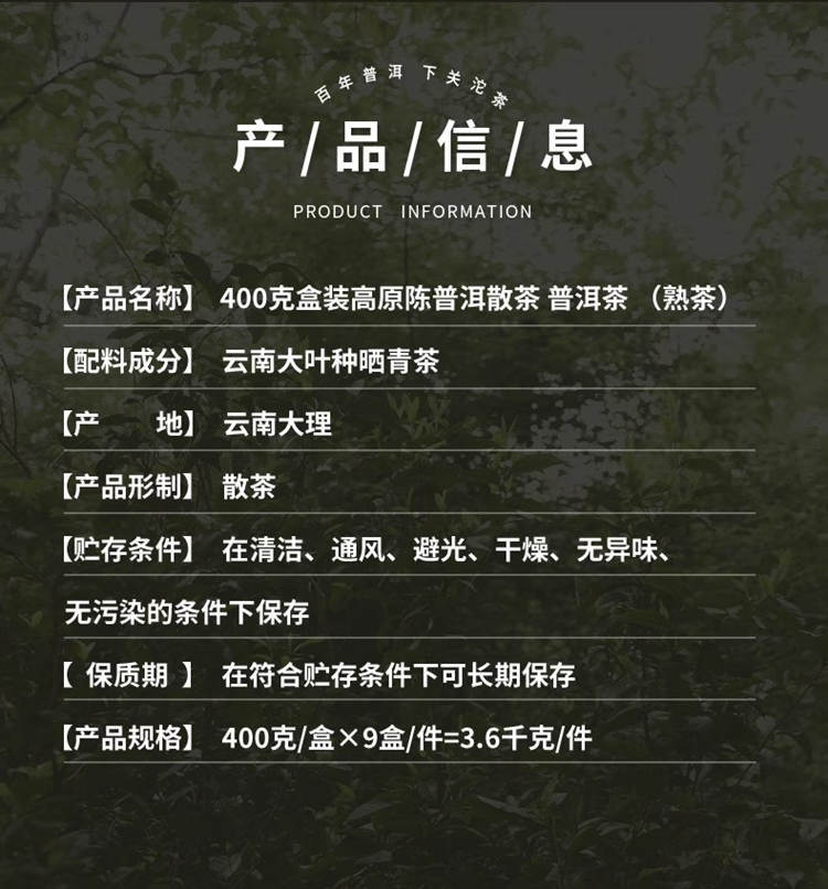 2024年下关 高原陈一级普洱散茶 10g*40小袋 盒装熟茶