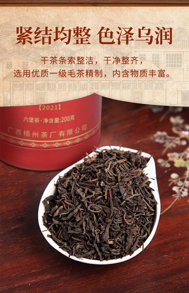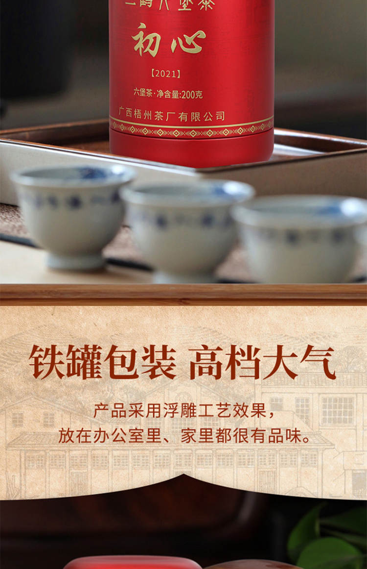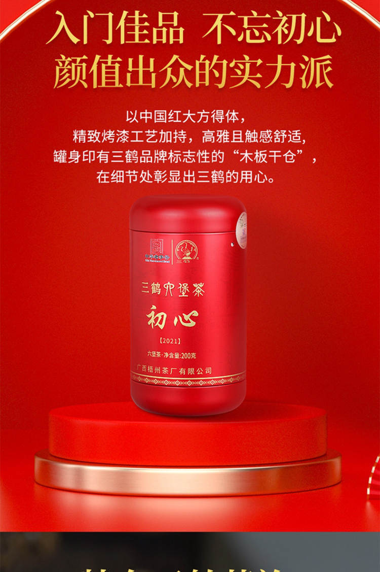 2021年三鹤六堡茶 初心 一级散茶 200g 罐装
