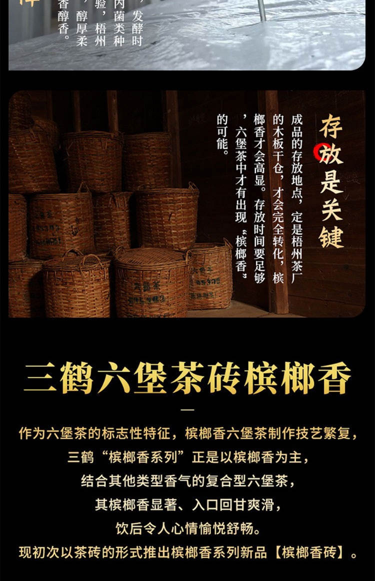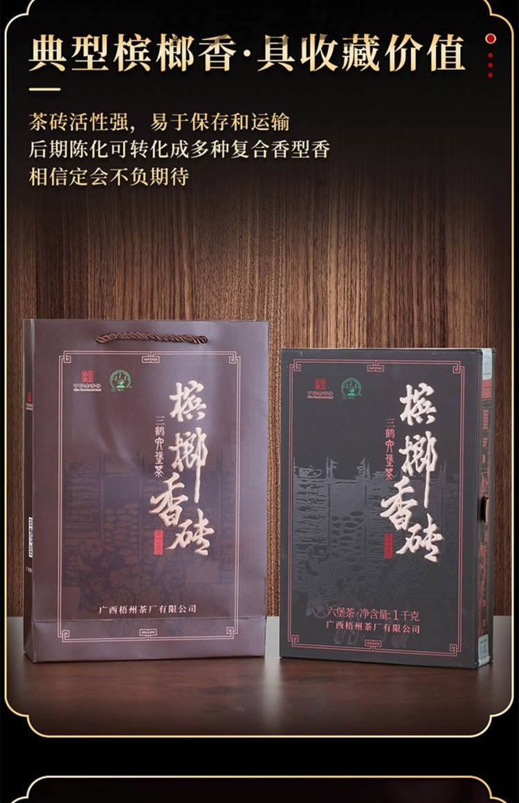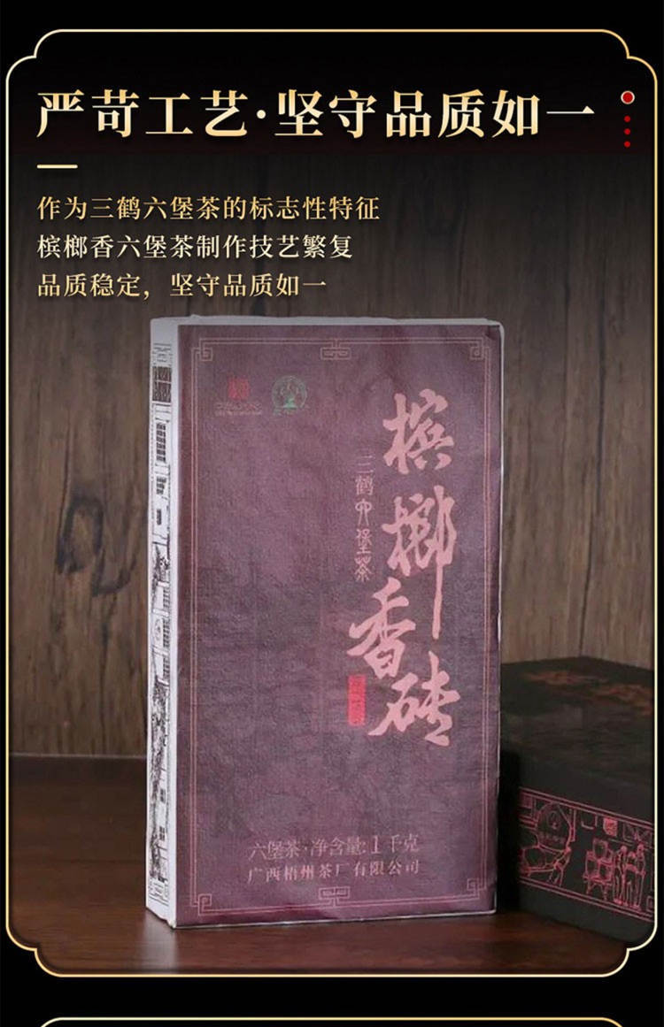 2022年三鹤六堡茶 槟榔香砖 二级槟榔香茶砖 1000g