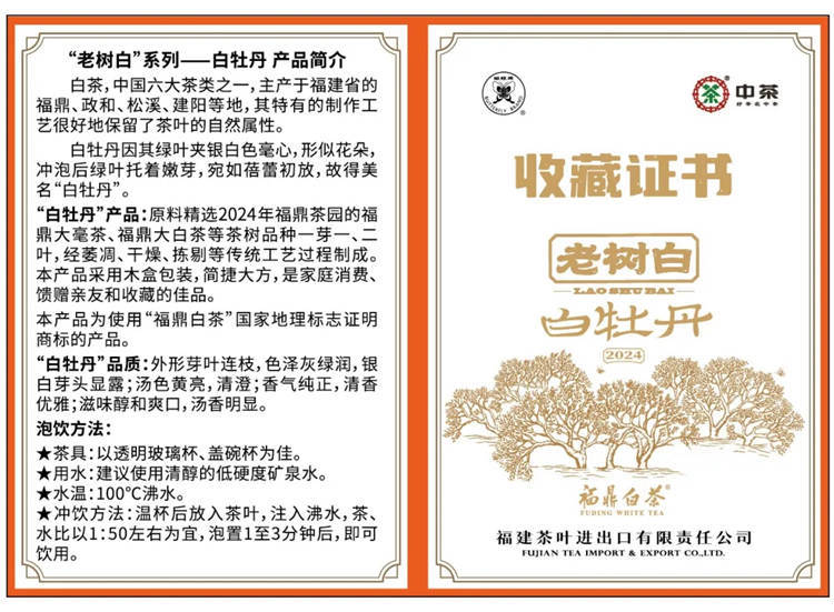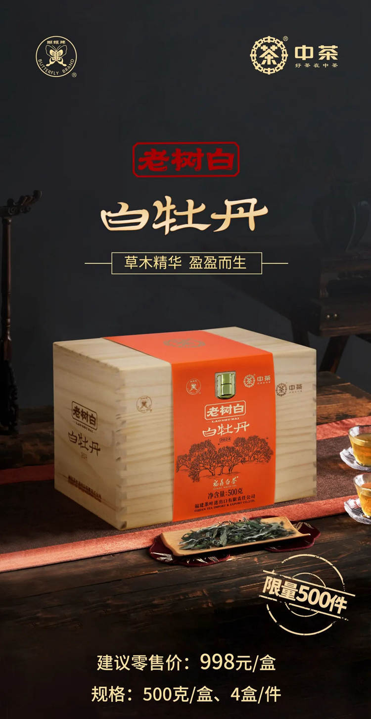 2024年中茶蝴蝶牌 老树白 白牡丹 500克木盒装