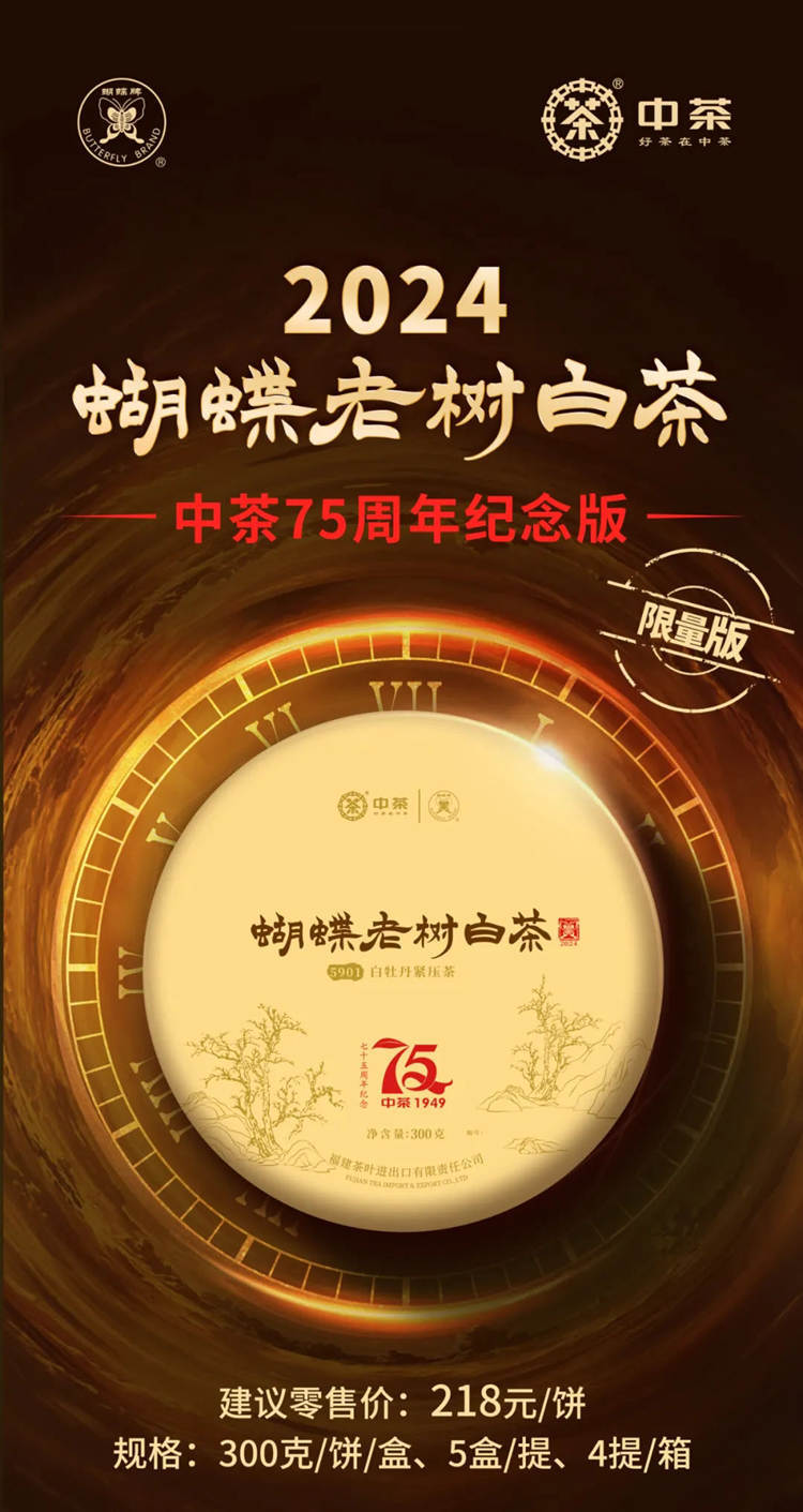 2024年中茶蝴蝶牌白茶 老树白茶 75周年纪念版