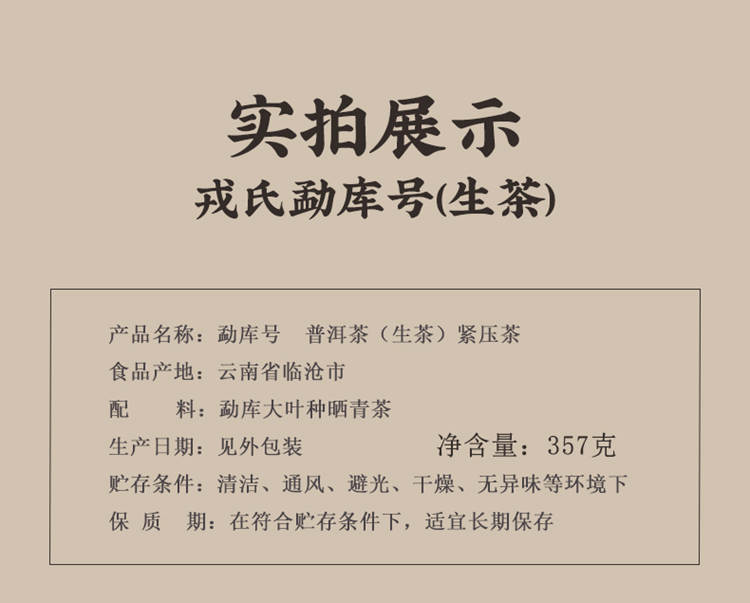 2021年勐库戎氏 勐库号生茶 357克饼茶