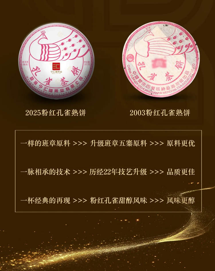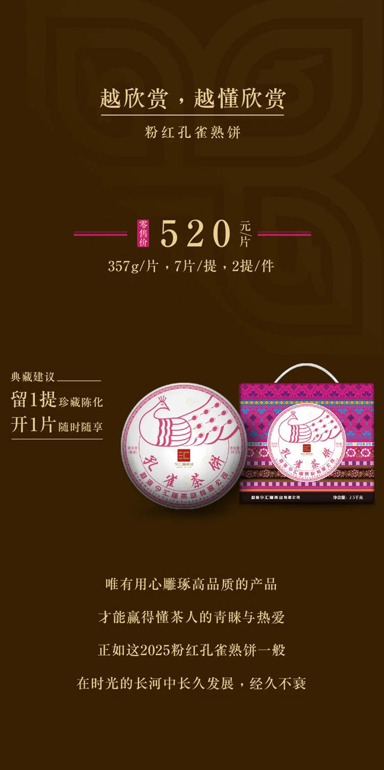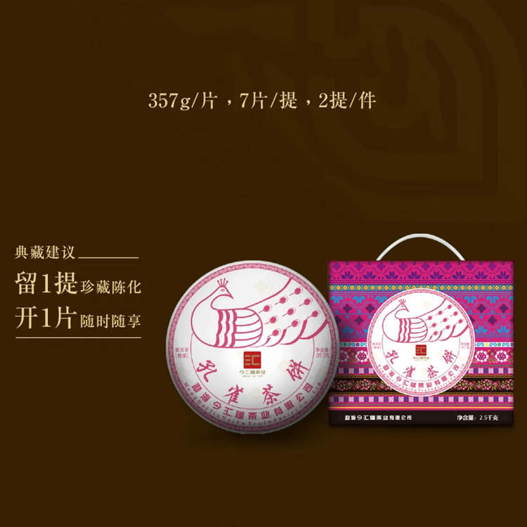 2025年今汇福 粉红孔雀茶饼 357克熟茶七子饼