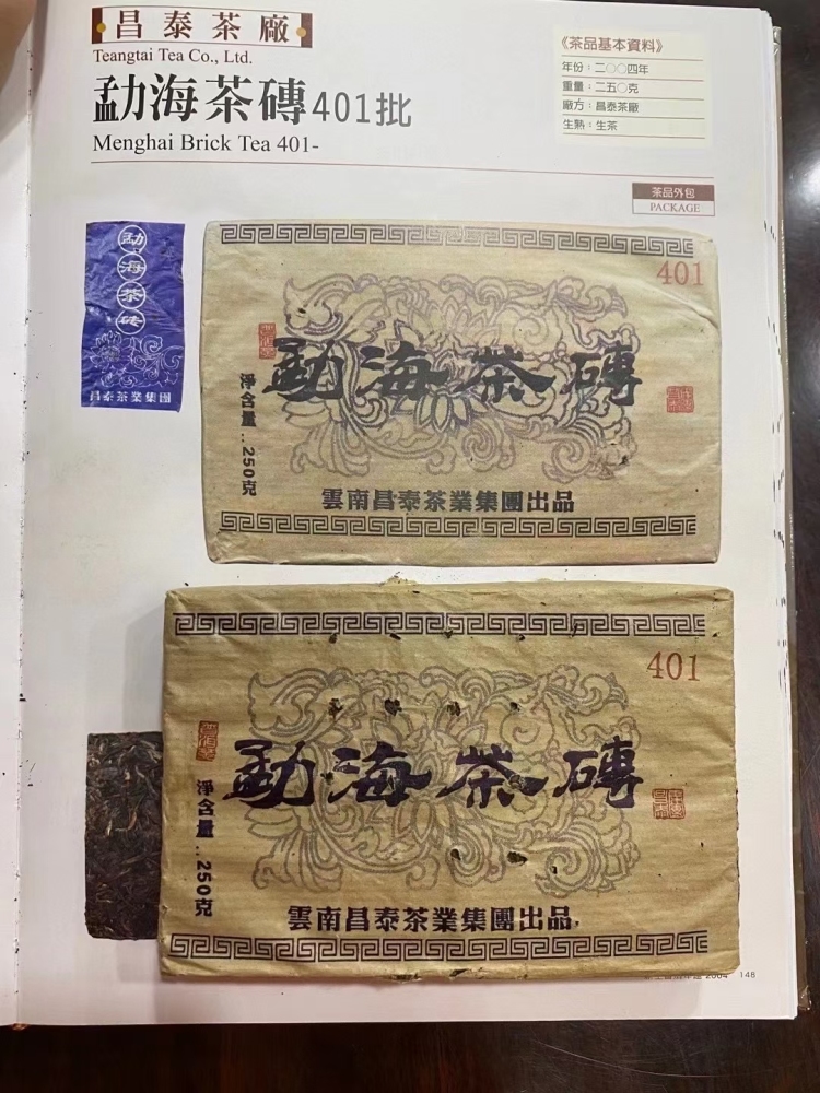 关于2004年昌泰勐海茶砖的介绍:250克/砖 4砖/扎