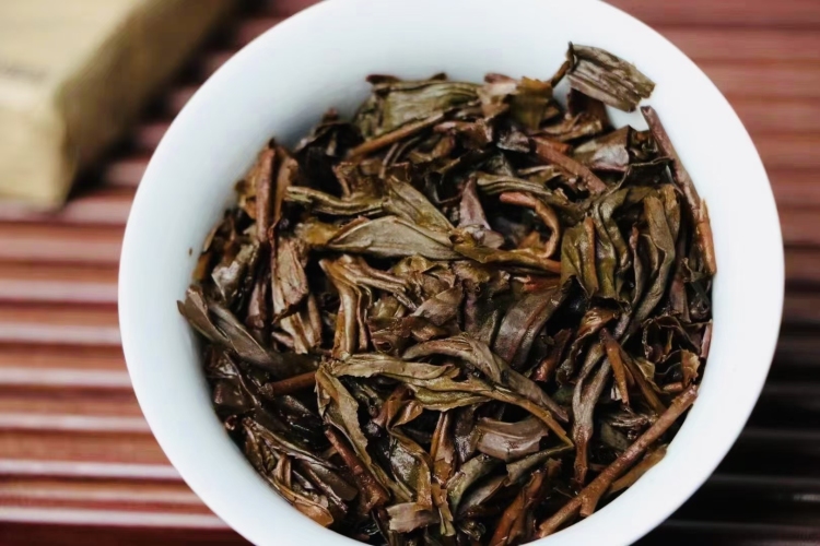 - 外观:茶砖干爽,色泽乌褐,条索粗壮,芽头丰富,金毫显露。