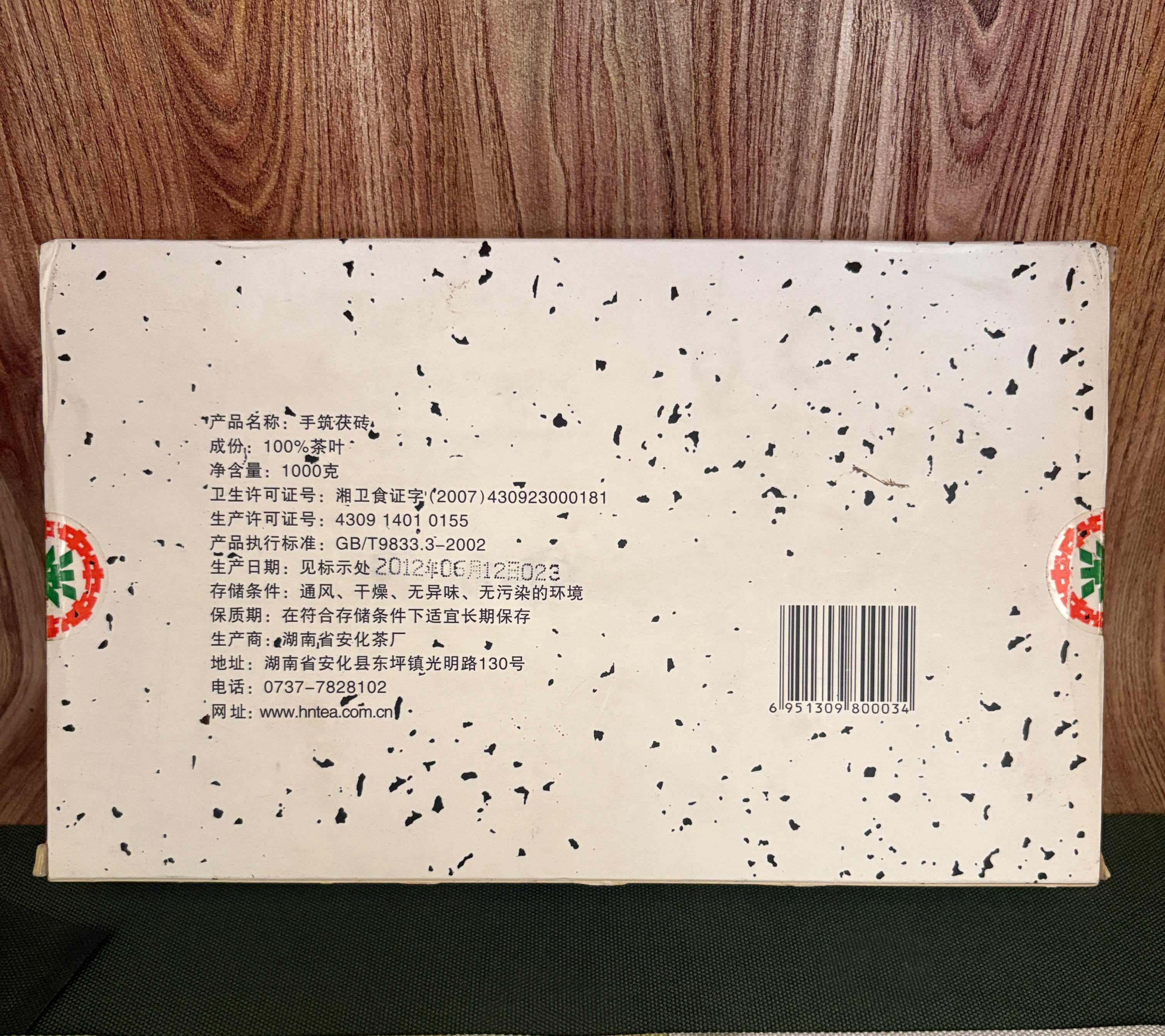 2012年中茶安化黑茶手筑茯砖【白卡】1千克