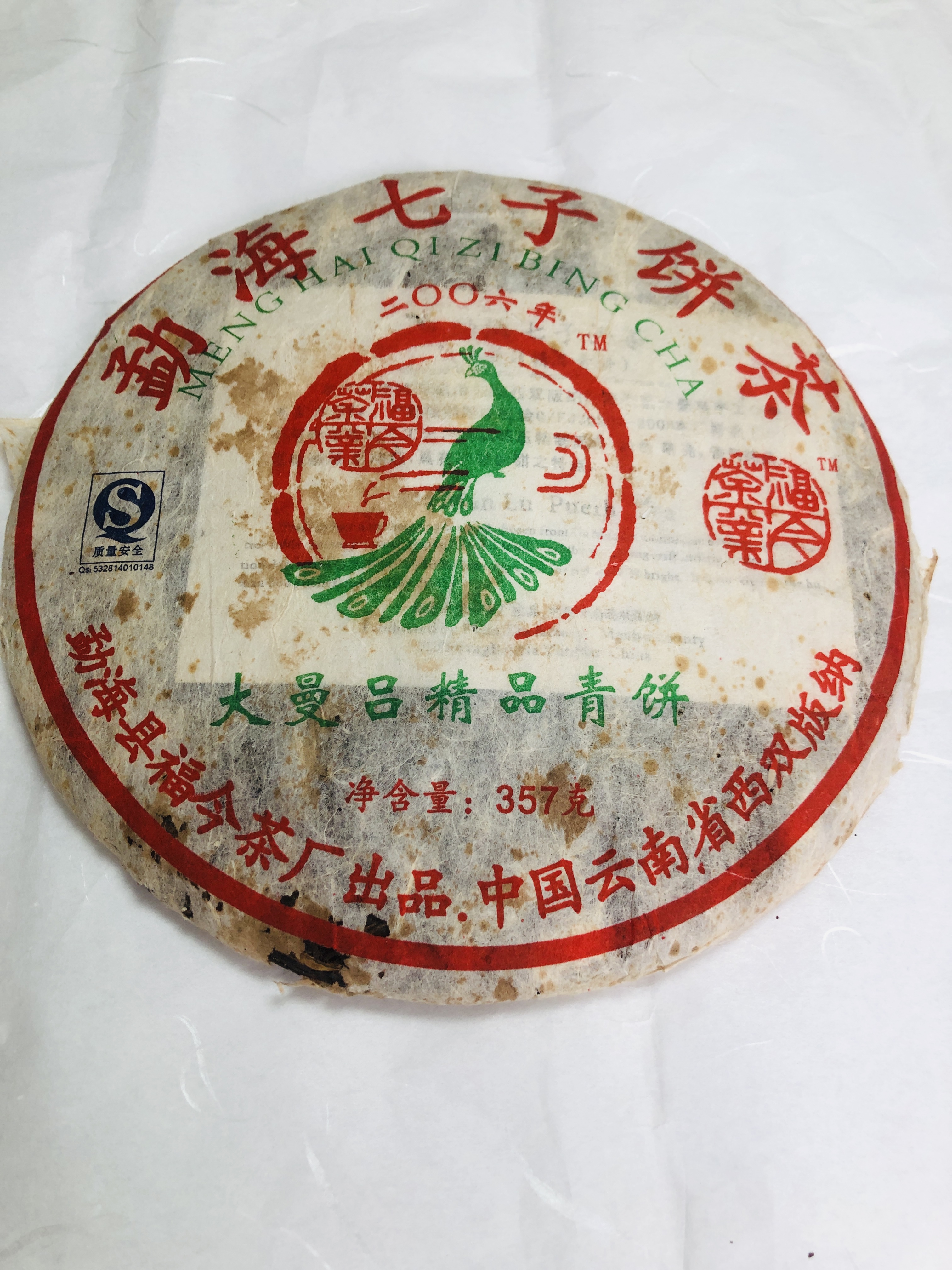 2006年福今大曼吕青饼357克生茶仓好