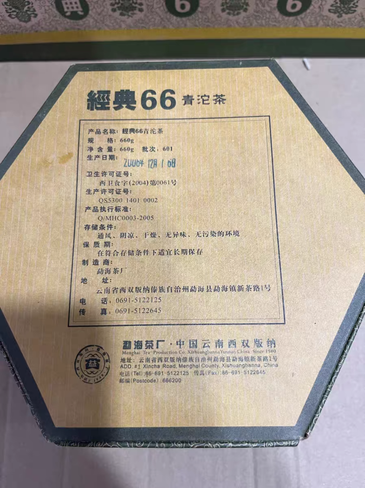 大益2006年601批次经典66青沱普洱生茶660克盒装纪念茶 陈年老茶