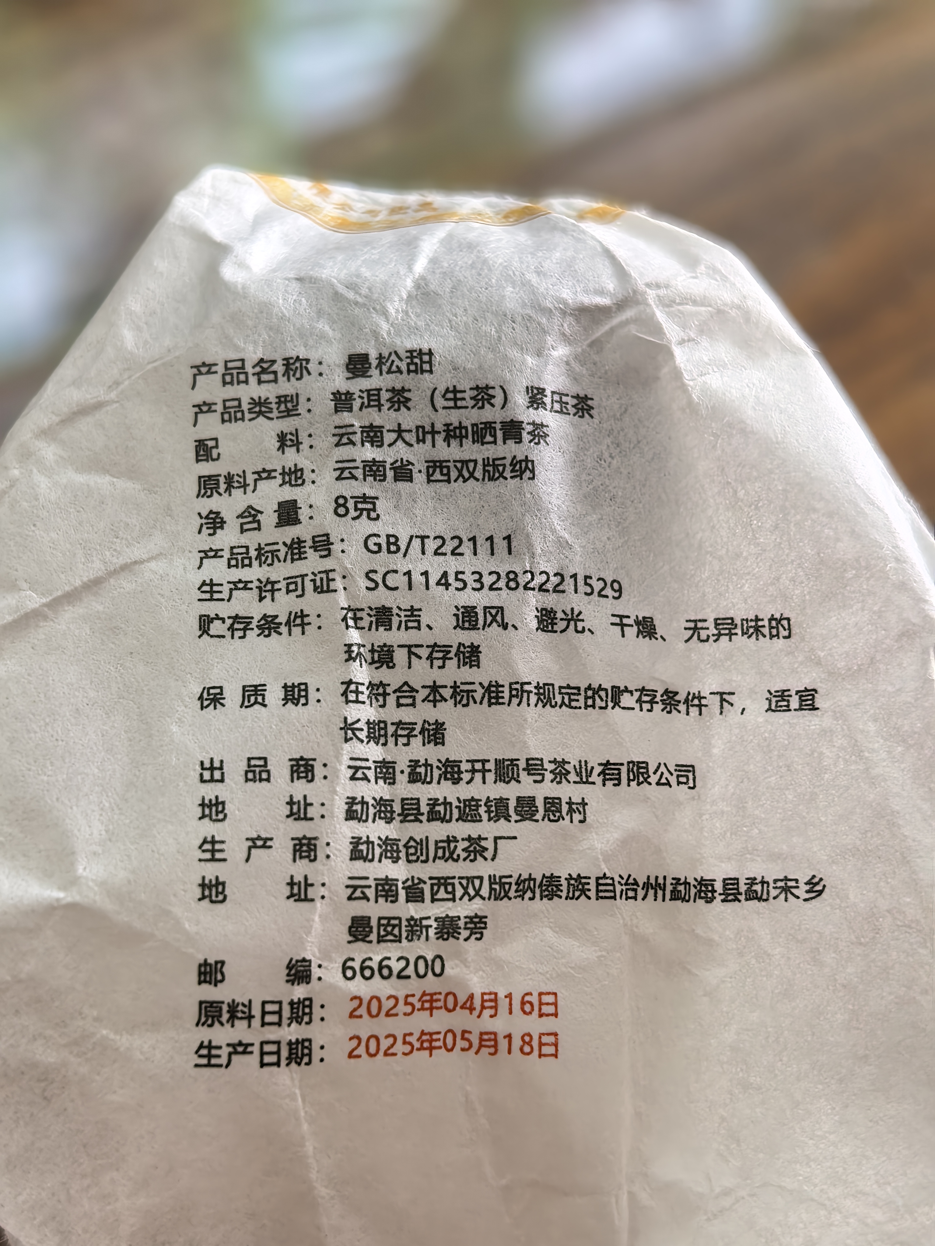 2025年曼松甜茶 龙珠生茶 8克