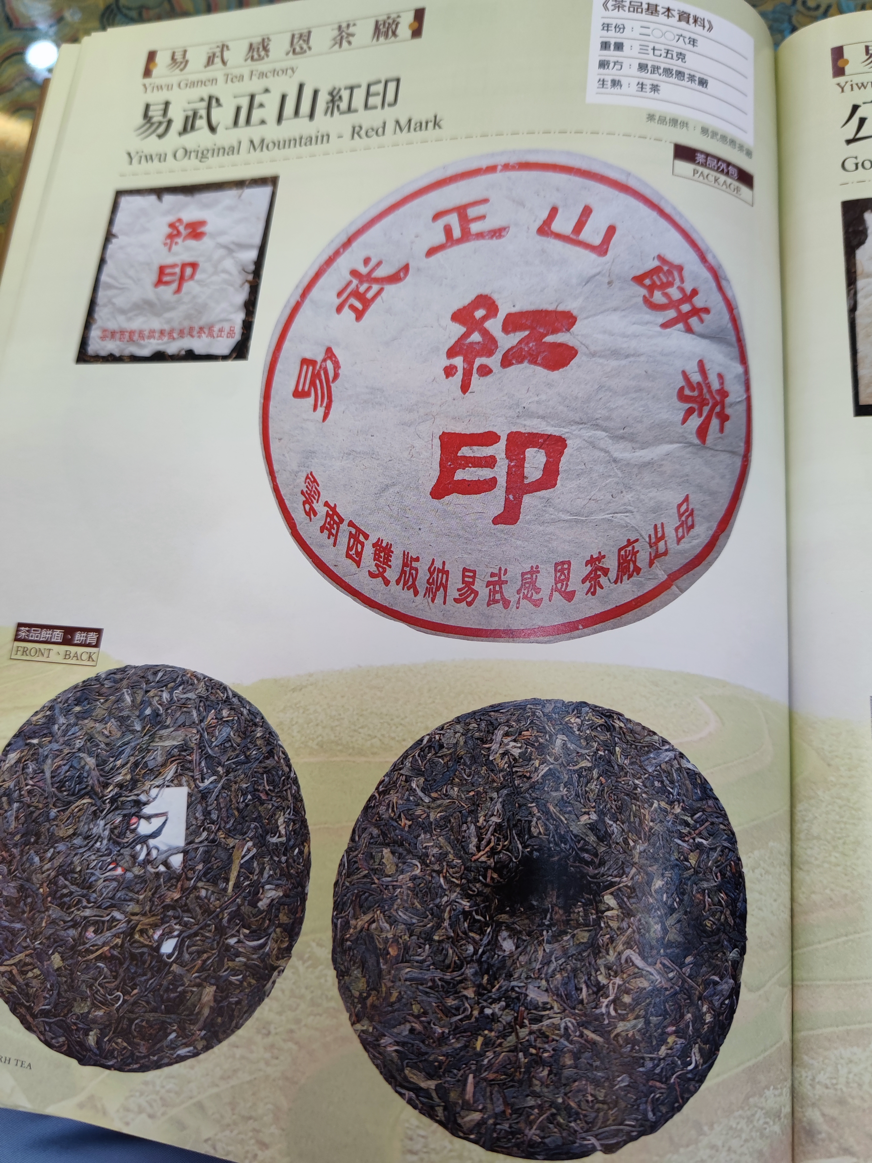 2006年感恩茶厂易武正山红印青饼,357克