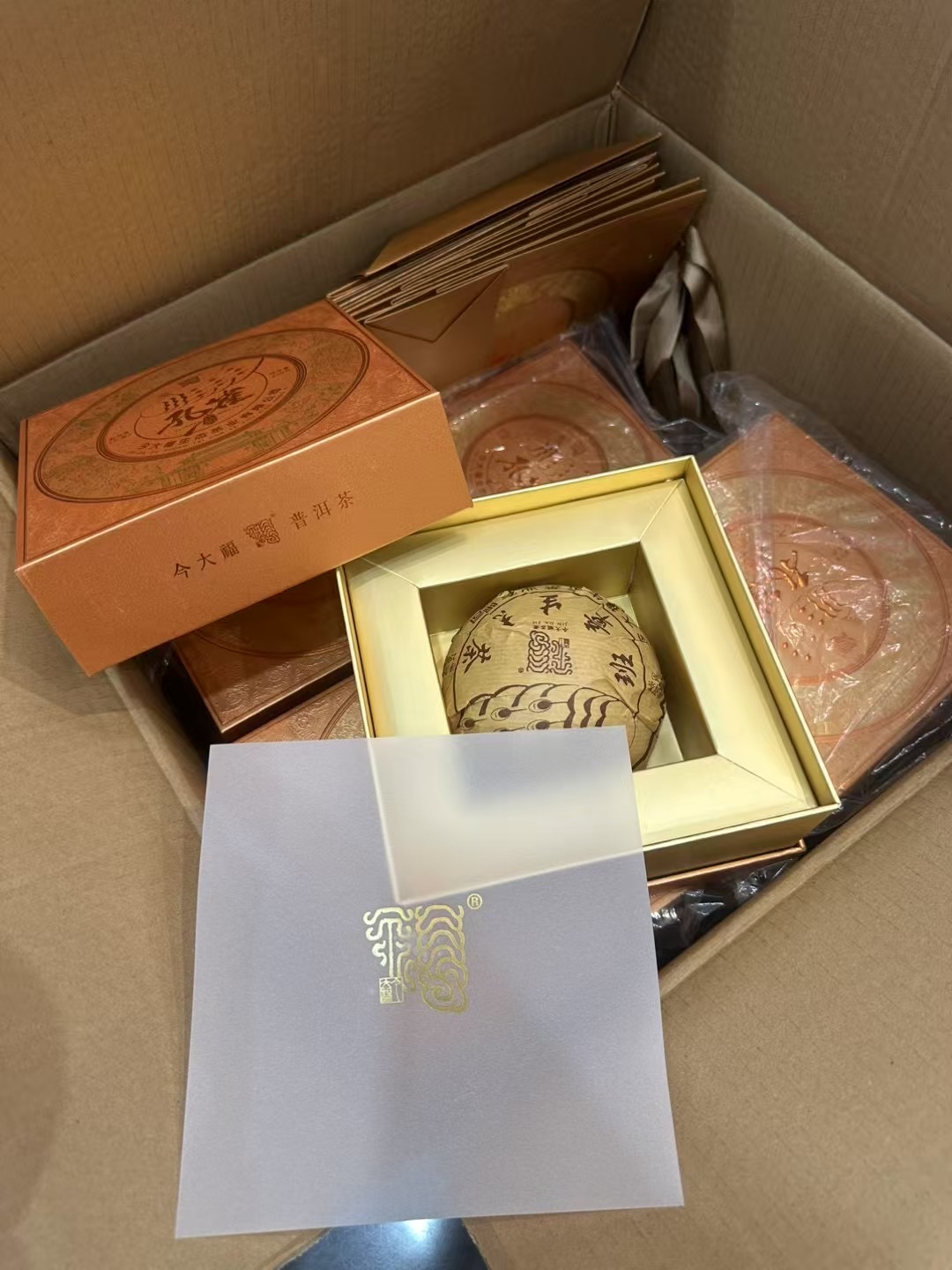 2023年今大福孔雀沱,初见,条索油亮 灰毫如银再闻 ,烟香入骨, 蜜韵天成,两相结合之下 烟蜜香赫然而出,回甘持久强烈,配有礼盒礼袋