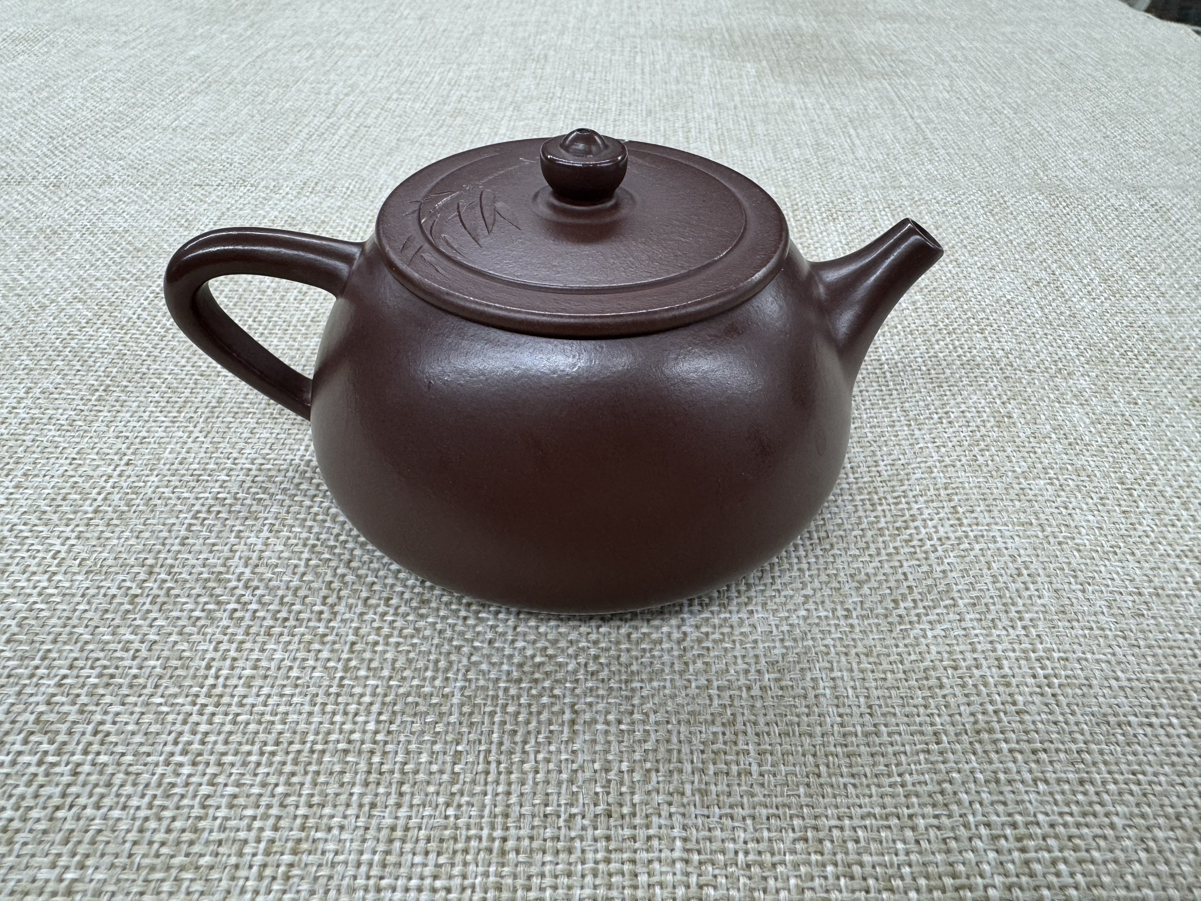 作品名称:新石瓢 泥料:原矿紫朱泥 容量:220cc 作者:陈菊华
