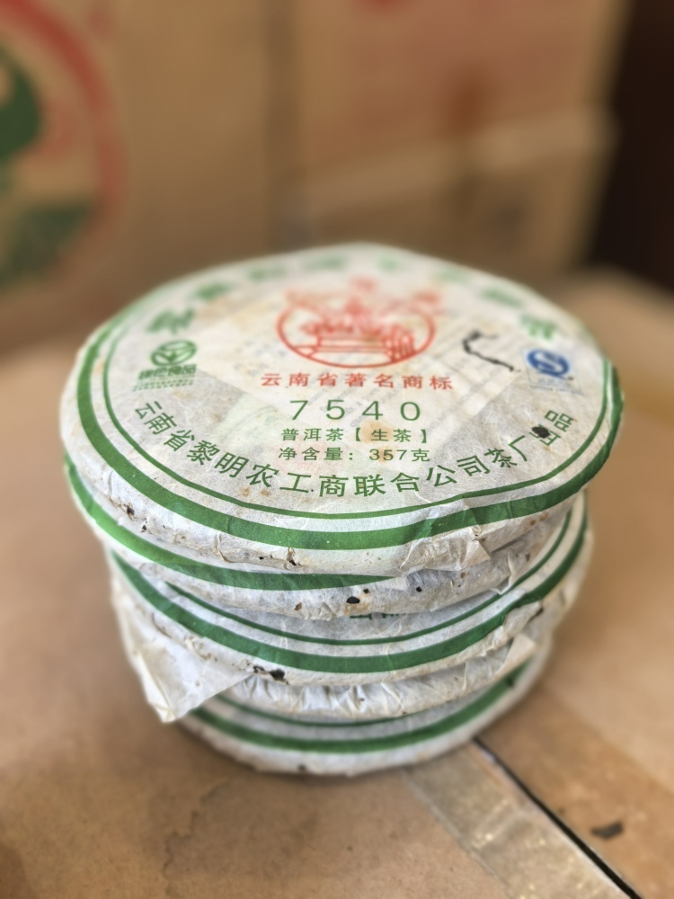 黎明茶厂09年7540青饼,早春布朗料,银毫显露,汤色透亮,香气高扬,回甘快,生津持久,[强]