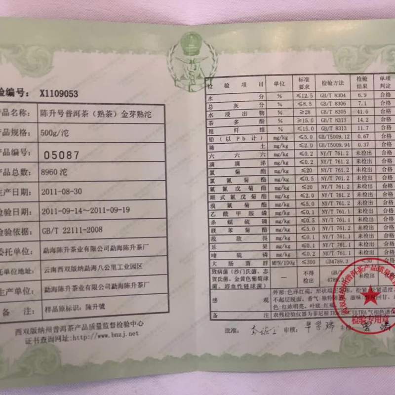 陈升号2011年 金芽熟沱 500克熟茶 盒装