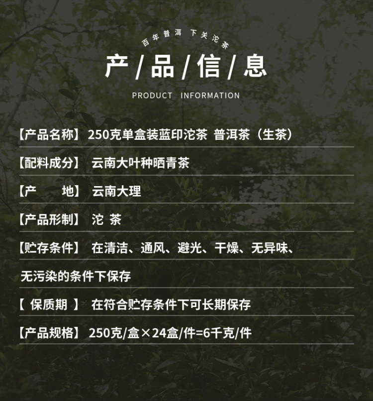 2024年下关蓝印沱250克普洱生茶