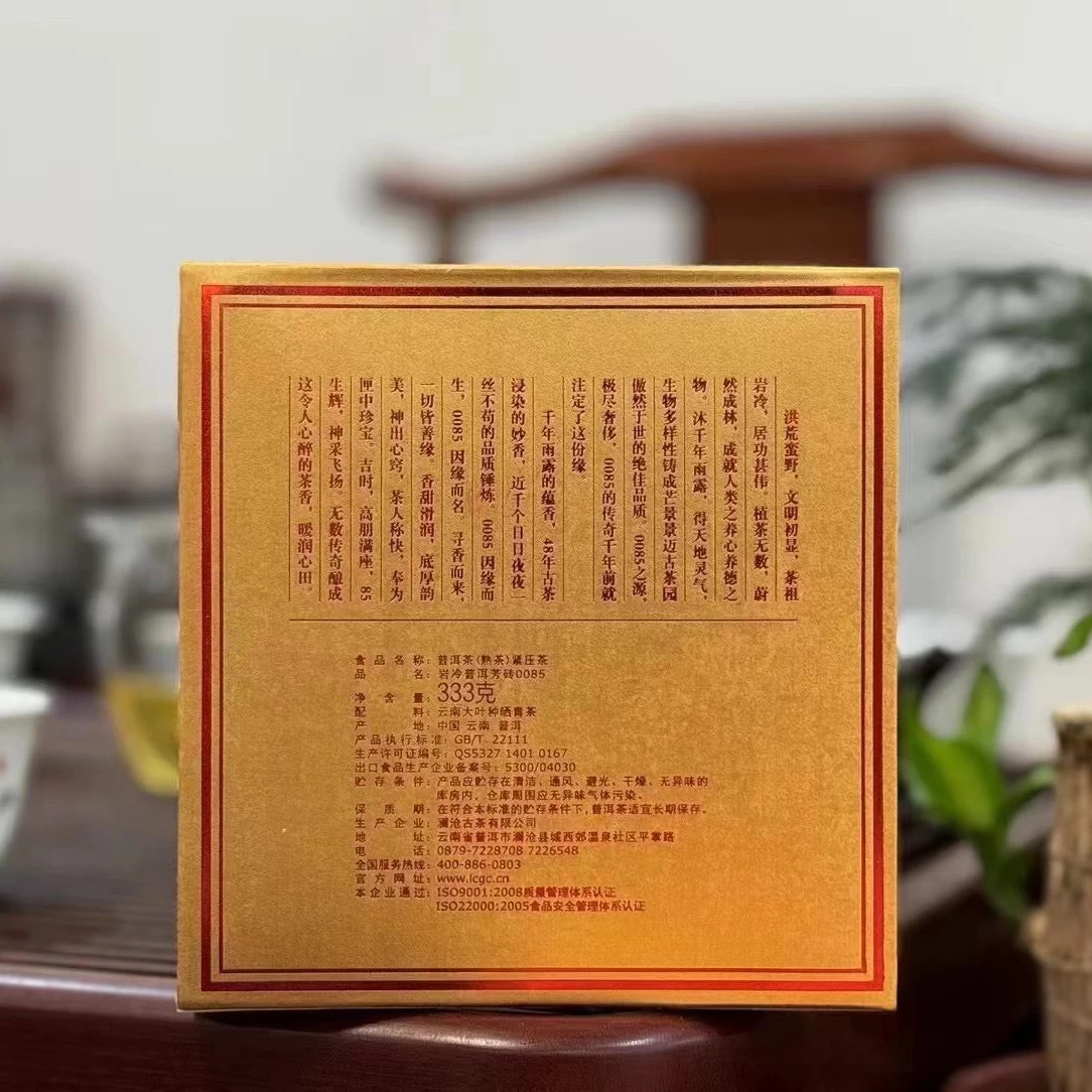 澜沧古茶2014年0085芳砖云南景迈山古树纯料普洱茶333克古树熟茶