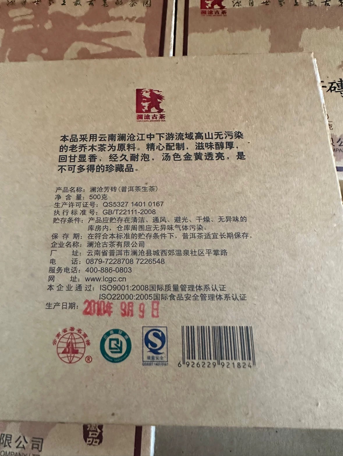 澜沧古茶2010年澜沧芳砖普洱茶生茶云南茶叶老茶口粮生普砖茶500g
