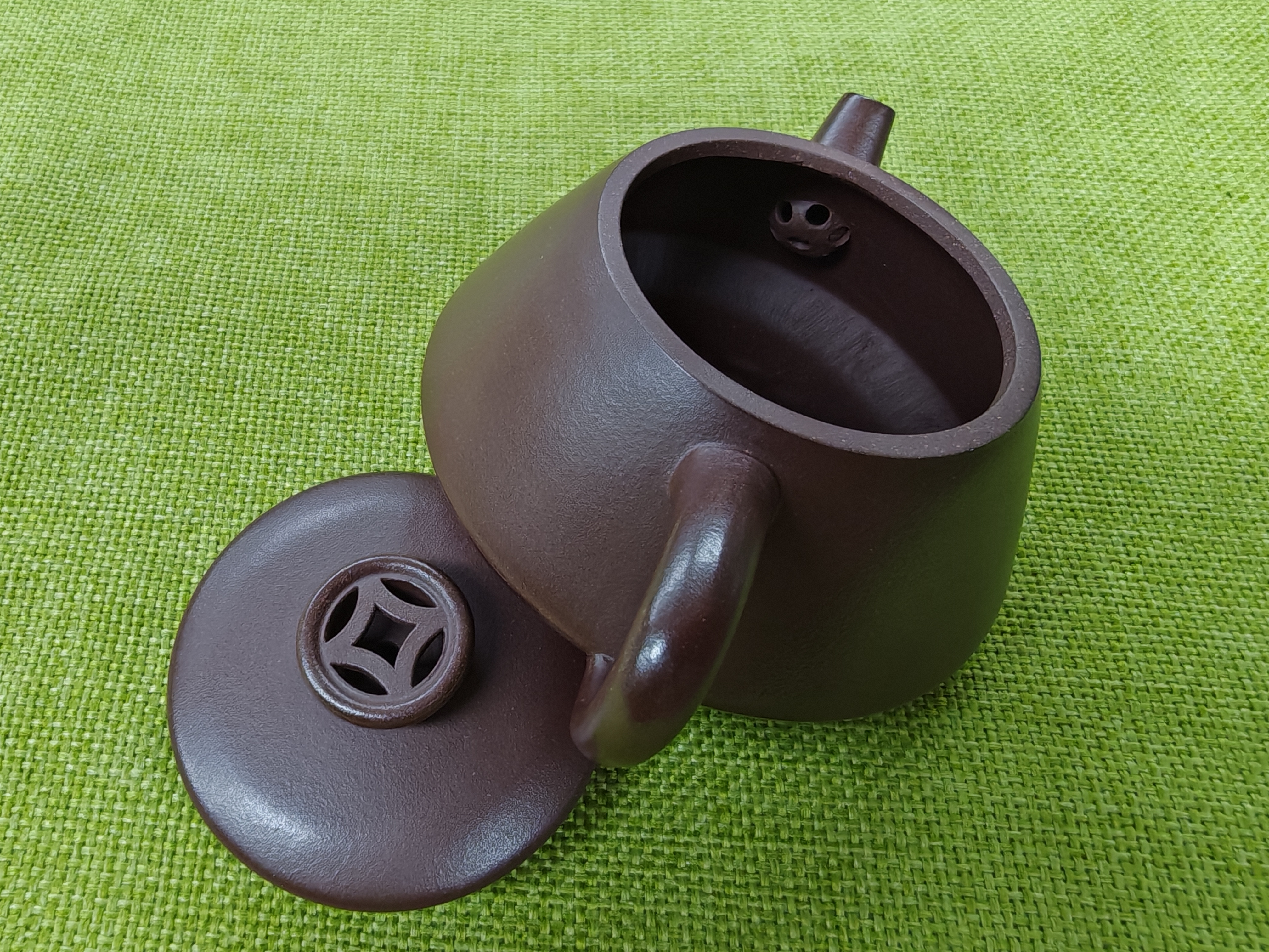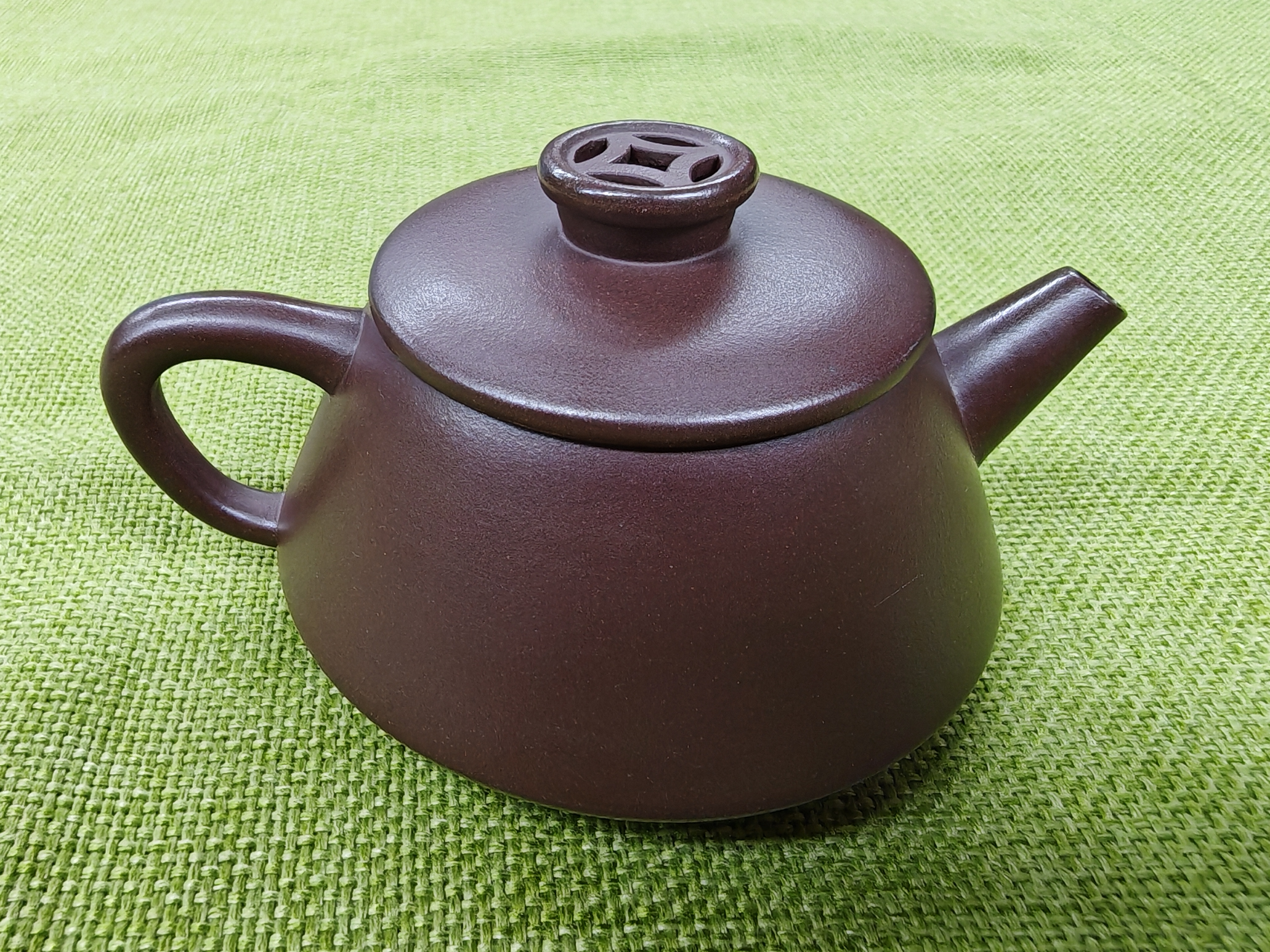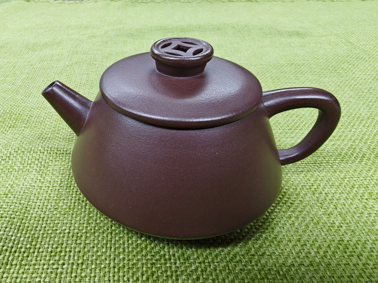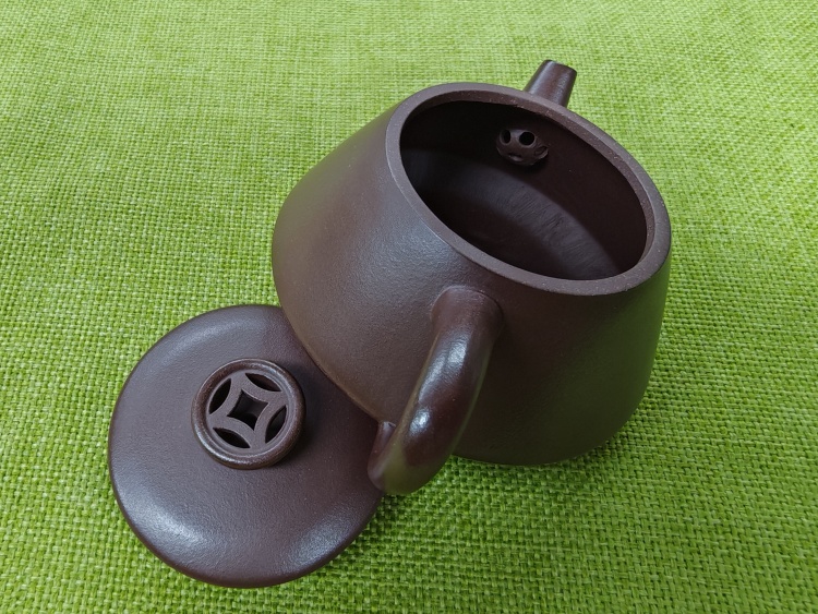 宜兴紫砂壶 老紫泥 镂空石瓢 130cc
