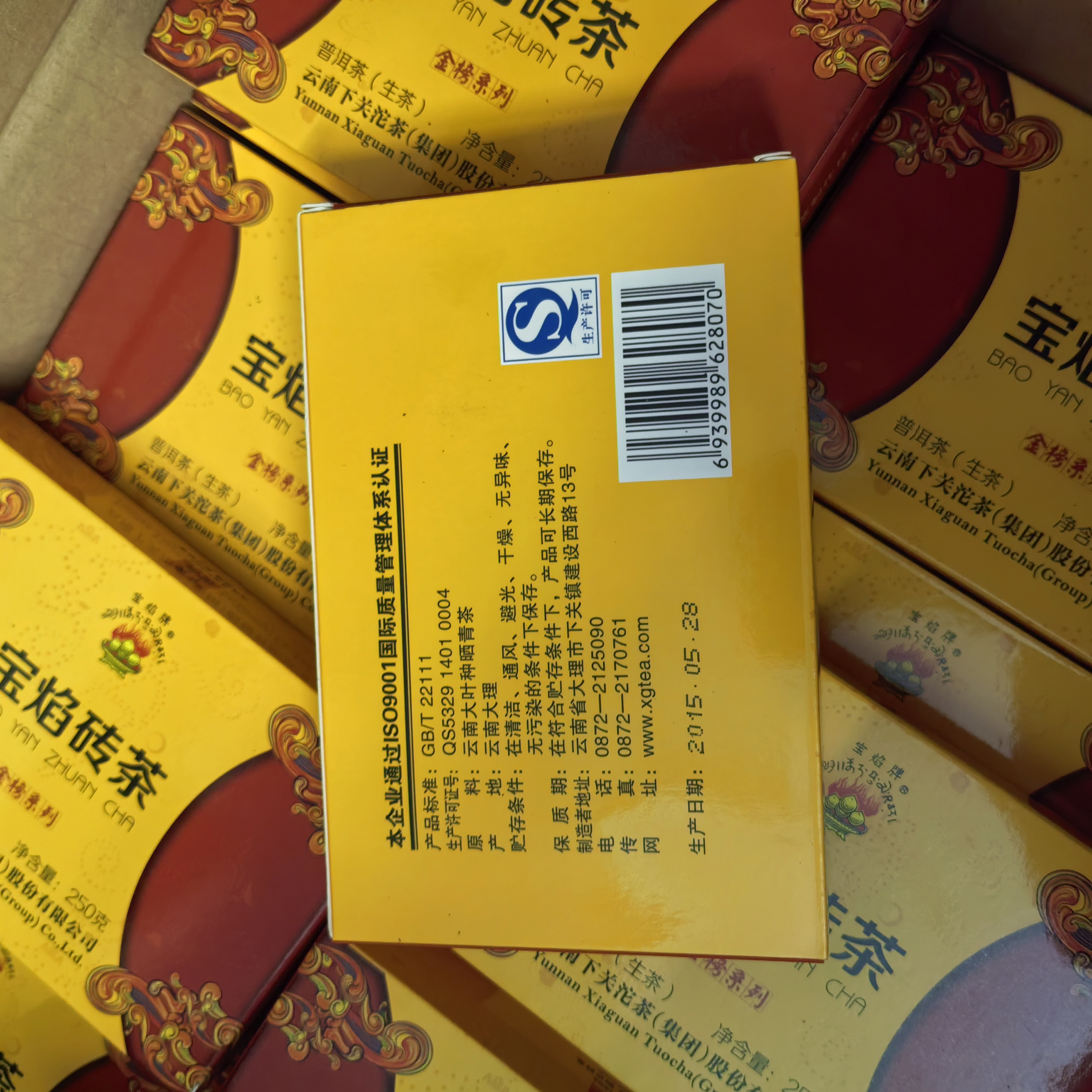 4盒2015年下关金榜系列宝焰砖茶250克*4盒普洱生茶