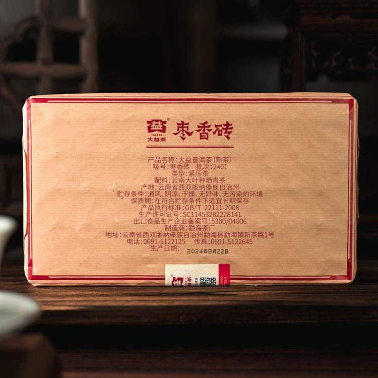 2025年大益 枣香砖熟茶 1000克砖茶