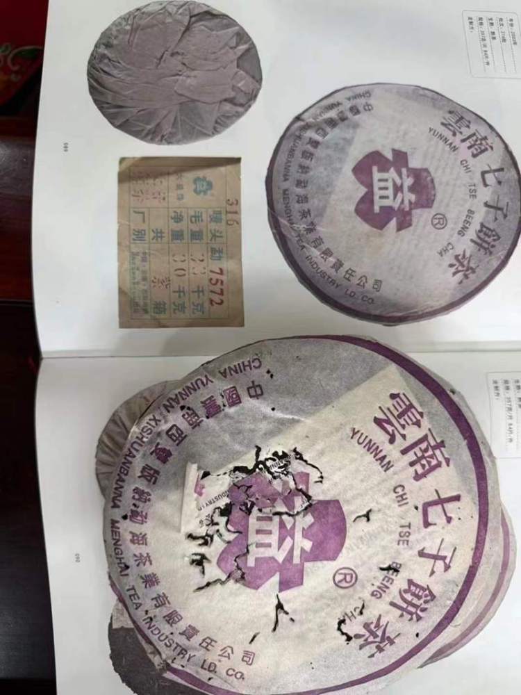 316-7572,广东仓储,有虫眼破损,浓浓勐海味,经典的熟茶配方。干茶能闻到悠然的陈香,糖香显,尾水经典甜木香,甜润稠厚顺滑细腻