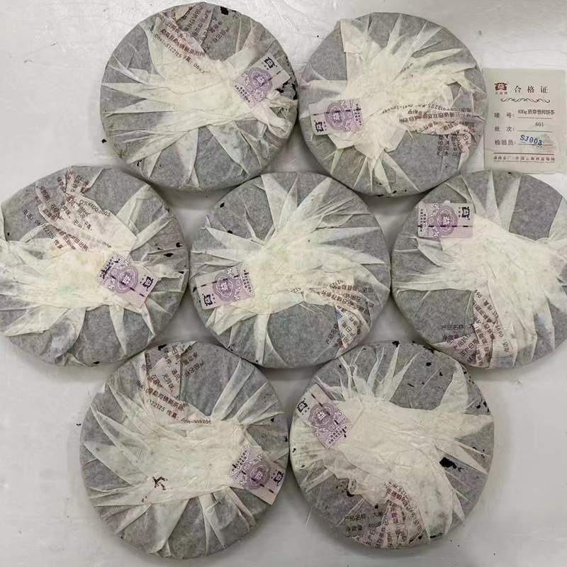 601班章有机熟茶,是勐海茶厂改制后生产的首款有机班章熟茶,被誉为“末代白菜熟茶”,是中老期普洱茶市场上的硬通货。601班章有机熟茶压制松紧适度,茶饼条索肥壮,饼面乌褐油亮,以细嫩芽头撒面,已经转为金黄色,金芽密布,美观度很高。