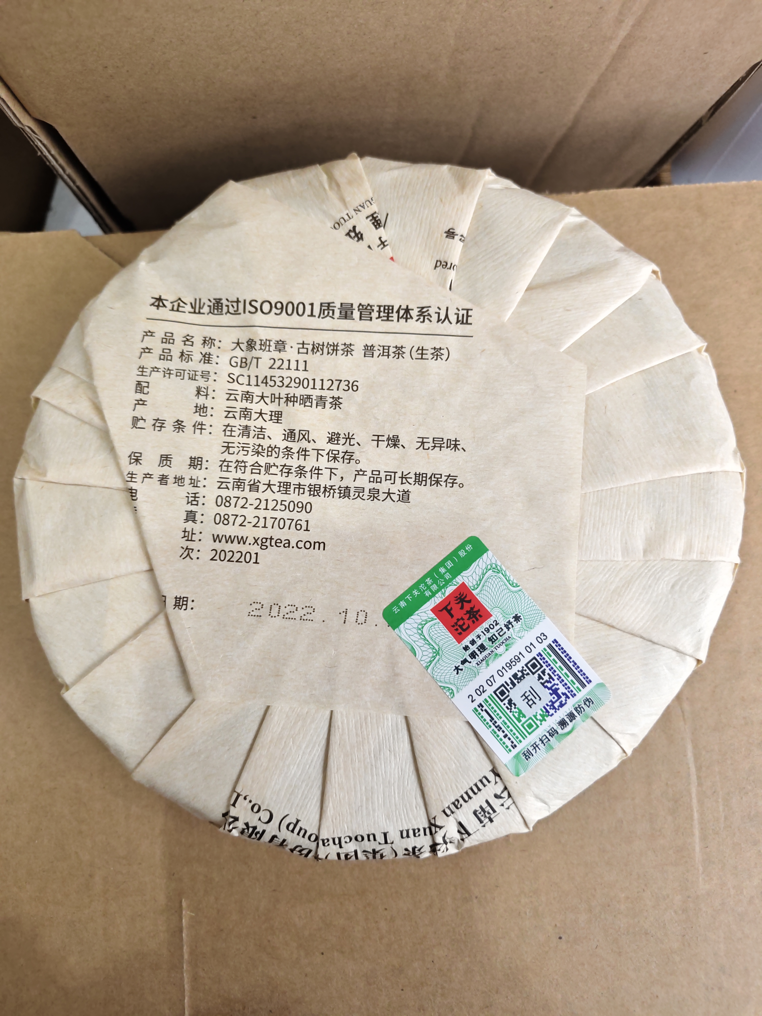 2022年下关大象班章云南普洱生茶357克