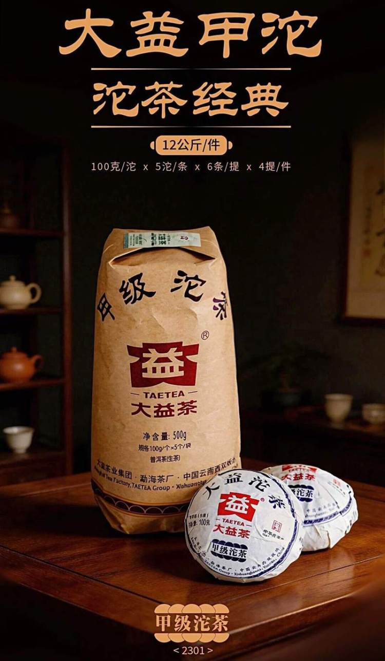 大益的甲级沱茶是它是大益传统经典系列产品之一。用料上,选用2-4级茶菁压制而成,拼配以细嫩和中壮的茶青相结合,外形以条索肥嫩、芽叶完整见长,内质兼顾了茶品的浓强度、鲜爽度和香气。