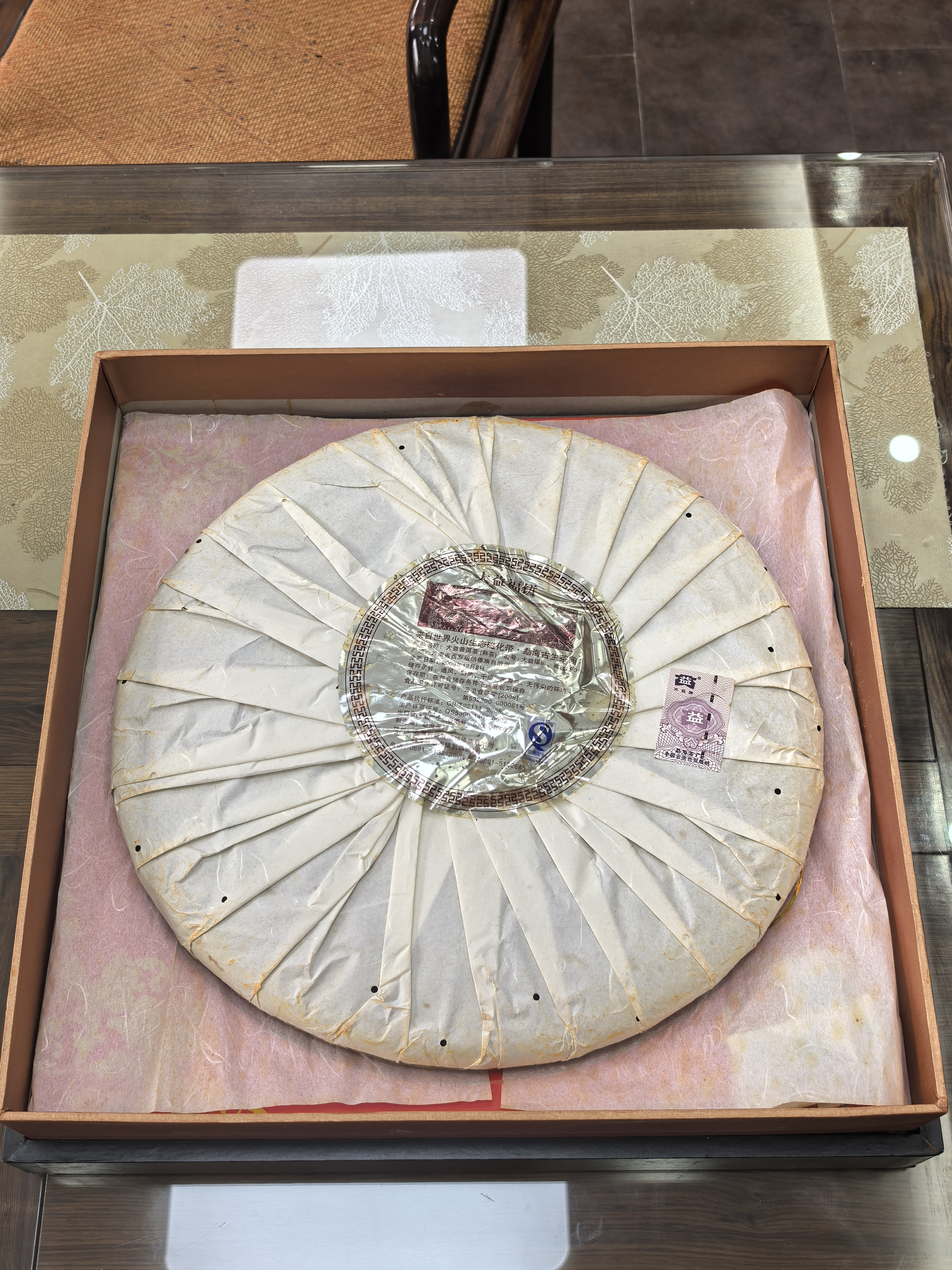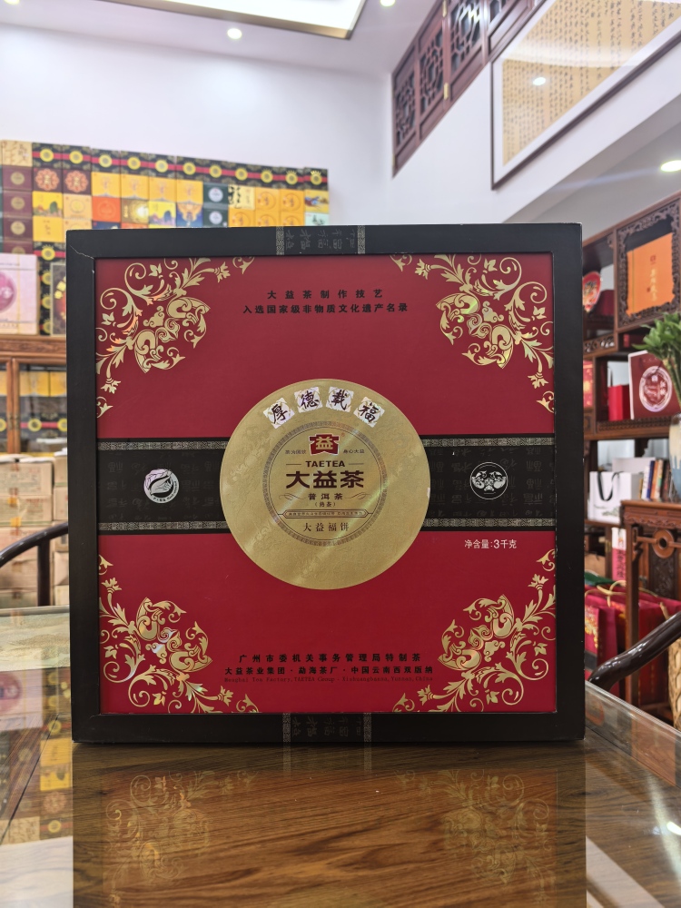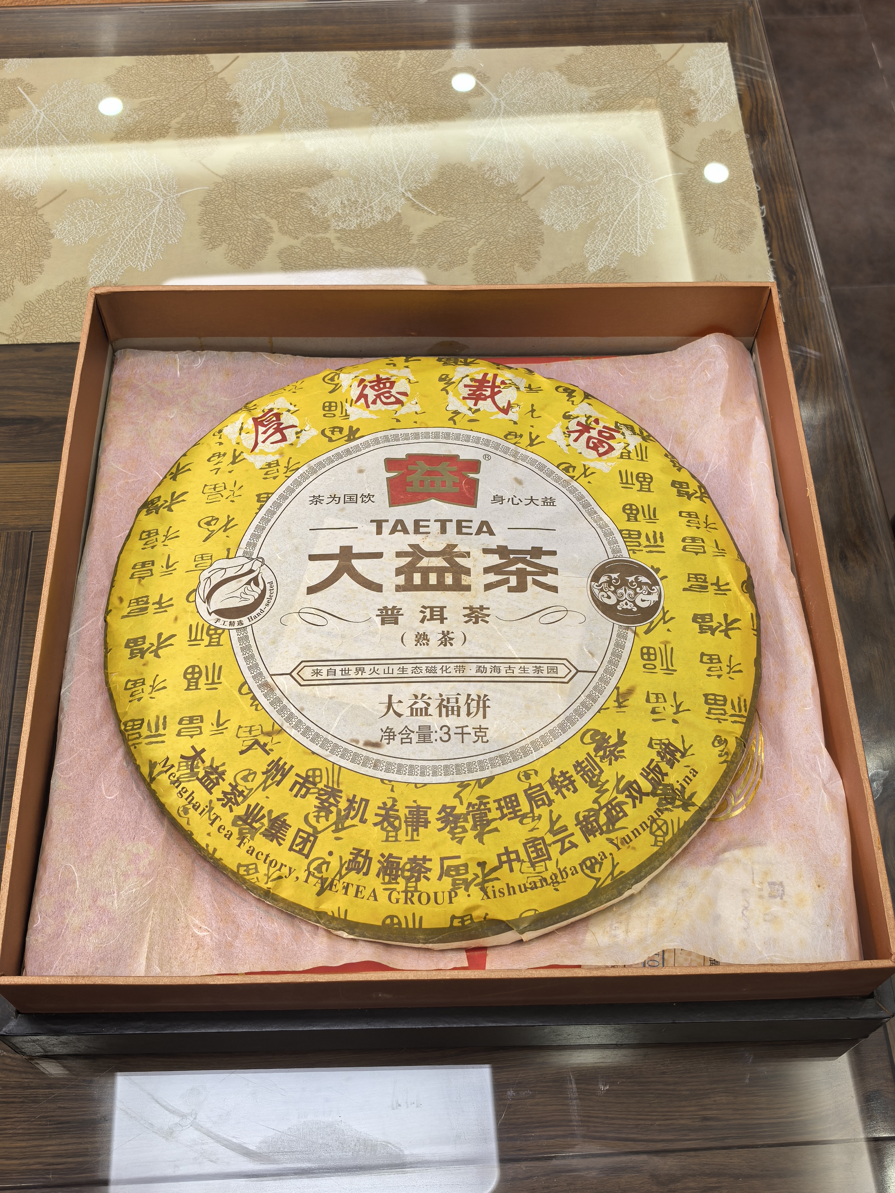 3kg的大饼是大益早年少见的“收藏级规格”,压制紧实,转化空间大,当年定位就是高端礼赠+长期收藏,饼型大气,摆在店里很有展示感。