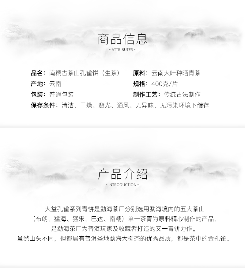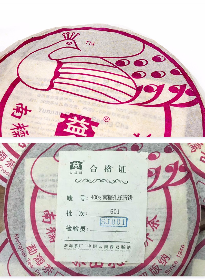 2006年大益 南糯孔雀生茶 400克七子饼 601批