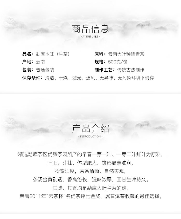 精选勐库茶区优质茶园所产的早春一芽一叶、一芽二叶鲜叶为原料
