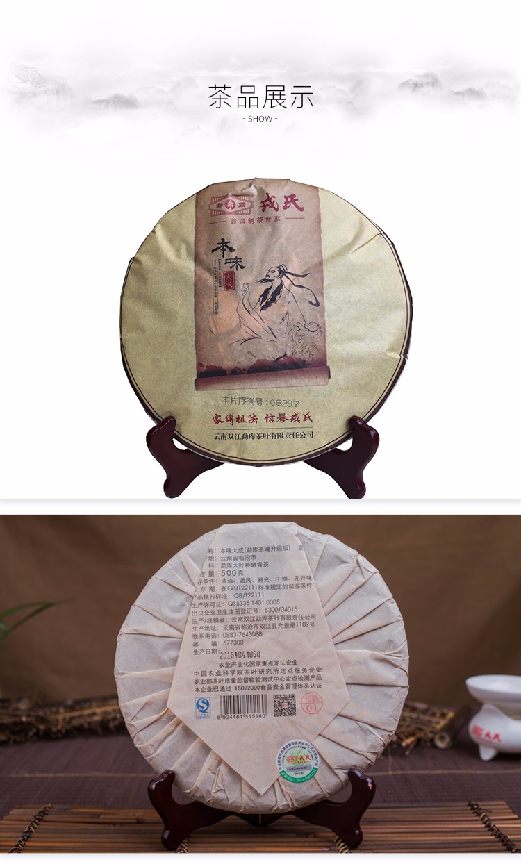 2015年勐库戎氏 本味生茶 500克七子饼 生茶