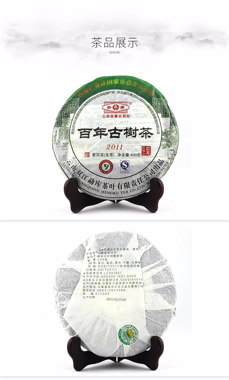 2011年勐库戎氏 百年古树茶生茶 400克七子饼