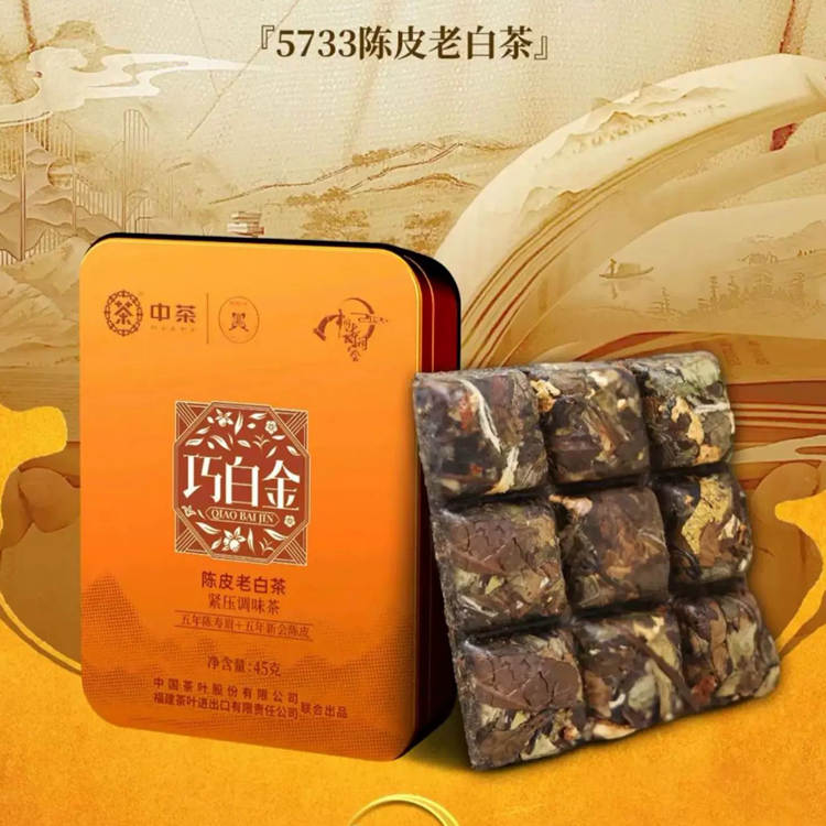 2023年中茶蝴蝶牌 5733 巧白金陈皮老白茶 五年陈45克盒装